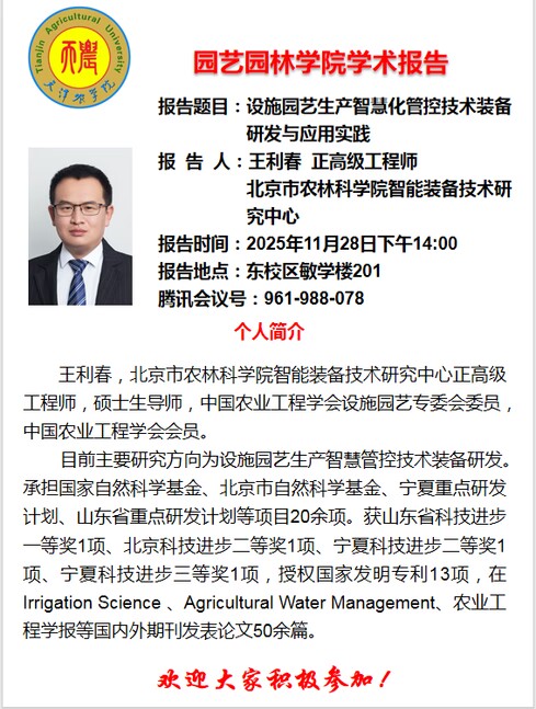 园艺学科学术报告(设施园艺生产智慧化管控技术装备研发与应用实践)