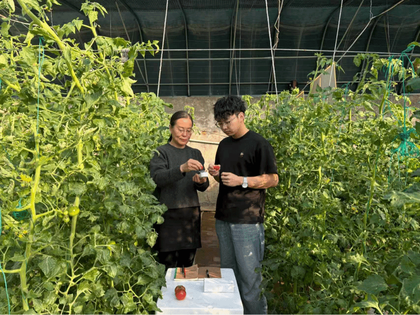 “不仅要让游客采得开心,更要吃得放心、吃得香甜!”这是师生们一致的行动准则。他们深入田间,以通俗易懂的方式向农户传授病虫害绿色防控与水肥精准调控等技术,尤其在糖酸比、风味物质积累等影响口感的关键指标上实施精细管理,确保每一颗成熟番茄都达到最佳风味。