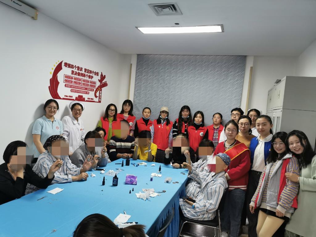本次党日活动以围绕关怀患者、服务患者、舒缓患者心理压力为主方向,经天津市肿瘤医院社工部纪伟伟老师、袁丽老师和健康咨询中心刘鑫鑫老师的细致培训后,分三队同时进行志愿服务。慰问团队的同学们由袁丽老师带领进入乳腺内科病房为患者深情朗读感人故事、与患者促膝谈心、倾听患者内心想法,在慰问结束时学生拿出蕴含专业特色的“滴胶压花”工艺品和专业设计绘画作品赠予患者,为患者送去暖暖温情;手工制作团队的同学们在乳腺内科护士长任海玲老师的热情帮助下,邀请到乳腺内科的患者现场进行“滴胶压花”的制作,结合园艺园林专业特色“园艺疗法”,用植物与艺术相结合的表现形式,帮助患者缓解心理压力,释放紧张情绪,营造情暖心间、其乐融融的文化氛围;医疗协助团队的同学们在纪伟伟老师的精心引导下,学习了医疗急救的相关知识,借助假人模型现场模拟急救情景,在志愿服务站同学们为前来的患者提供测量血压、信息咨询、自助挂号等服务。(为尊重患者隐私图像已做保护处理)