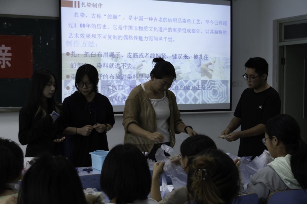 扎染体验传匠心:充满艺术气息的扎染体验活动让同学们感受到了民族传统工艺的神奇。白布经过捆扎、染色、拆线,呈现出独一无二的美丽图案。在体验非遗技艺的过程中,同学们对中华民族的创造力和文化多样性发出了由衷赞叹。