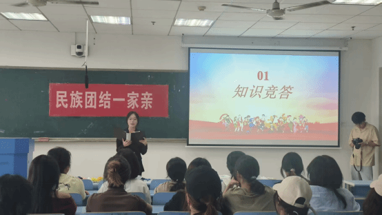 知识问答促学习:生动有趣的民族知识问答活动吸引了众多学生参与。题目涵盖民族风俗、历史文化、地理分布民族宗教政策法规等多个方面,同学们在抢答与思考中,丰富了知识储备,加深了对中华各民族多元一体格局的理解。
